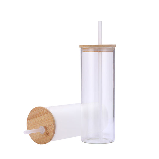 16oz CASE (32/16 UNITS) Sublimation Glass Tumbler With Straws And Bamboo Lids Transparent/Frosted